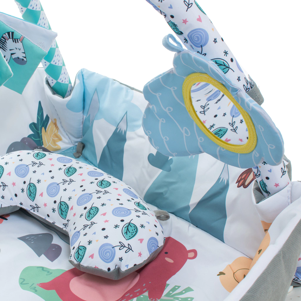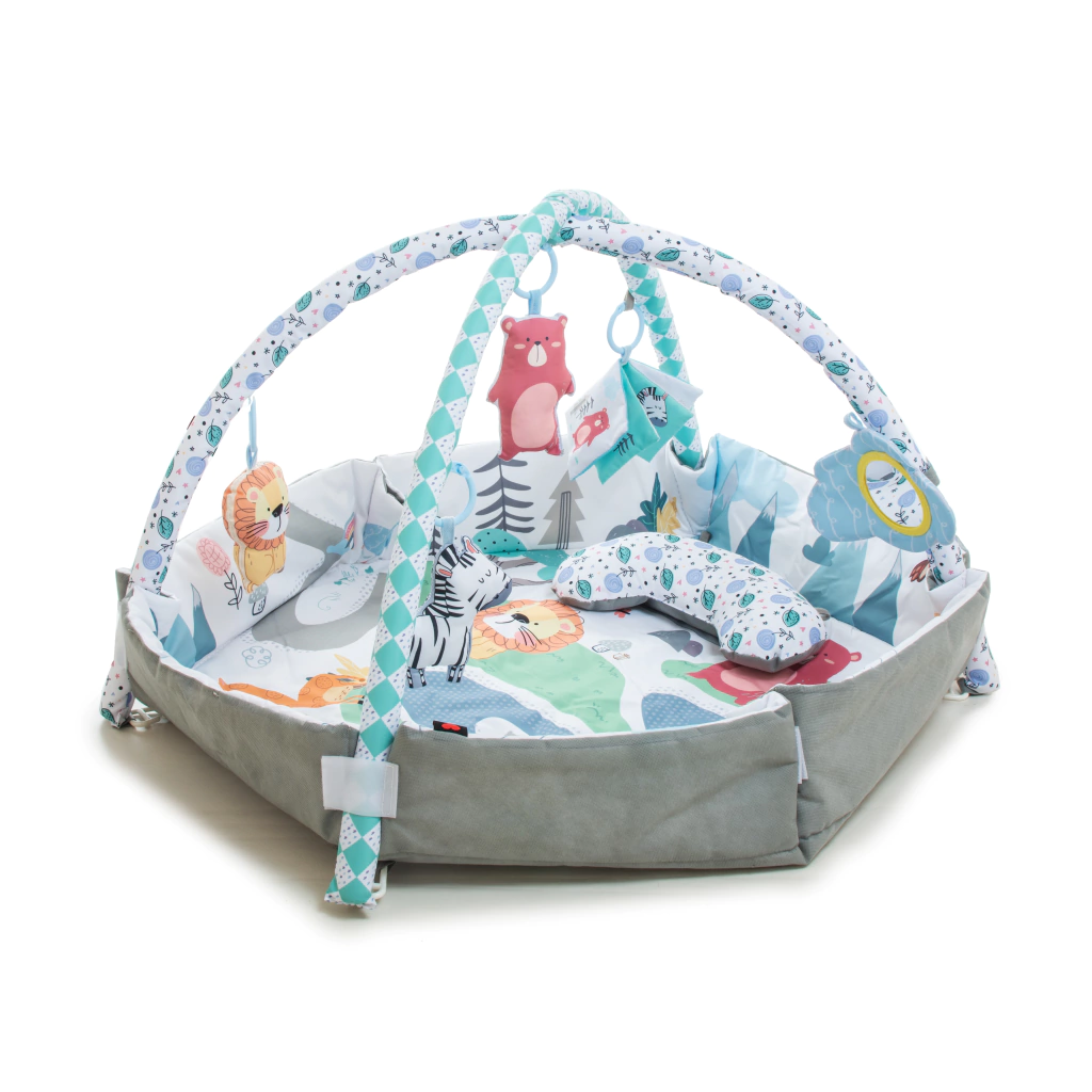 * 3 en 1: Gimnasio, Corralito, Pelotero * Alfombra acolchonada * Diseño: hexagonal * Arcos con juguetes varios * Apto recién nacido * Fácil de transportar * Incluye almohadón * Colores llamativos para estimular al bebe