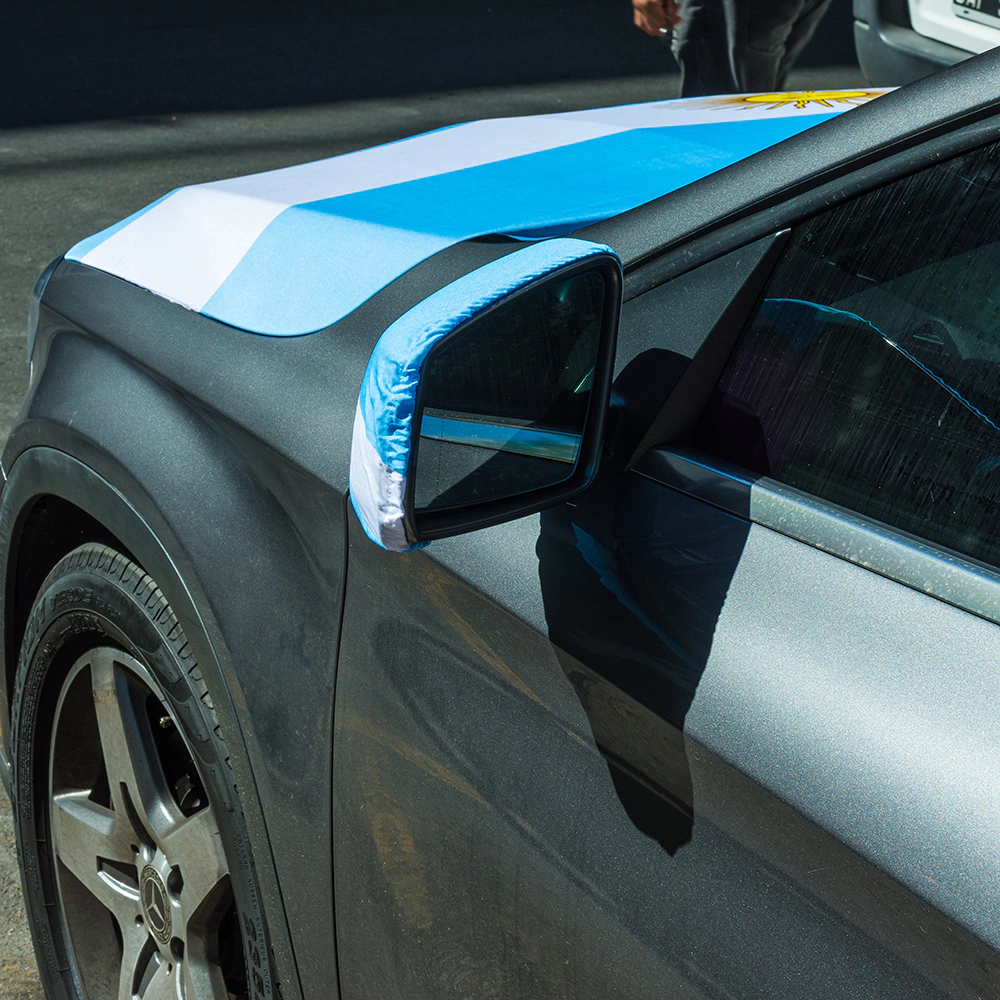 * Funda cubre espejo panorámico * Bandera Argentina * Laterales elastizados * Universal * Tela polyester con spandex * Diseño unico
