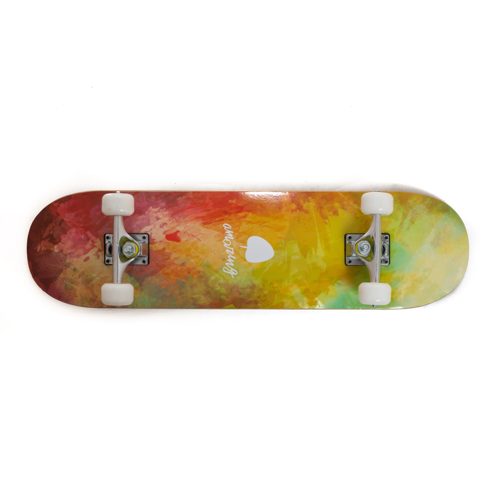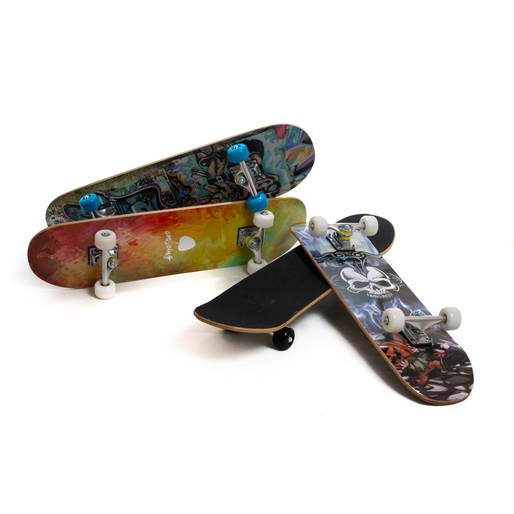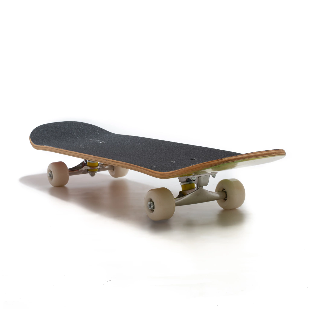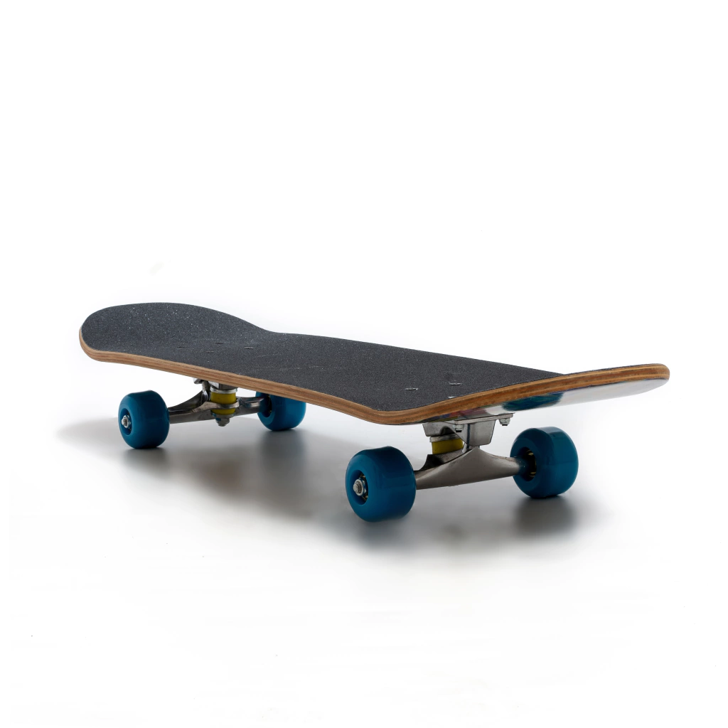 * Patineta de 31" de madera de maple. * Lija antideslizante arriba y dibujos abajo. * Truck de Aluminio de 5". * Ruedas de PU de 54x36mm * Ruleman ABEC-5 * Bujes de PU * Peso máximo 80kg. * Medidas: 79 x 20 x 9cm